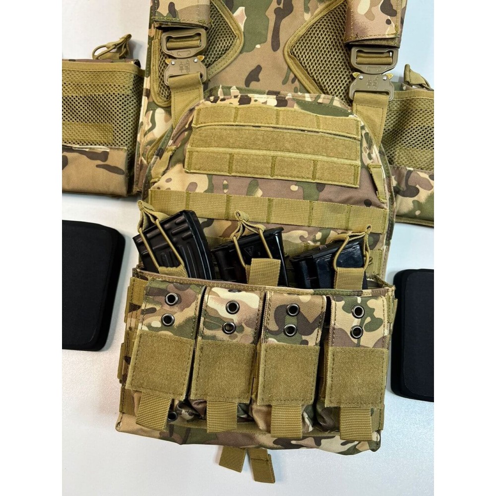 - Использование: Этот быстроразгружаемый жилет с возможностью установки боковых плит или баллистических пакетов идеально подходит для военнослужащих, сотрудников правоохранительных органов и всех, кто нуждается в надежной защите и готовности к действиям в различных ситуациях. Многофункциональный дизайн и возможность адаптации делают этот жилет незаменимым элементом тактического снаряжения.